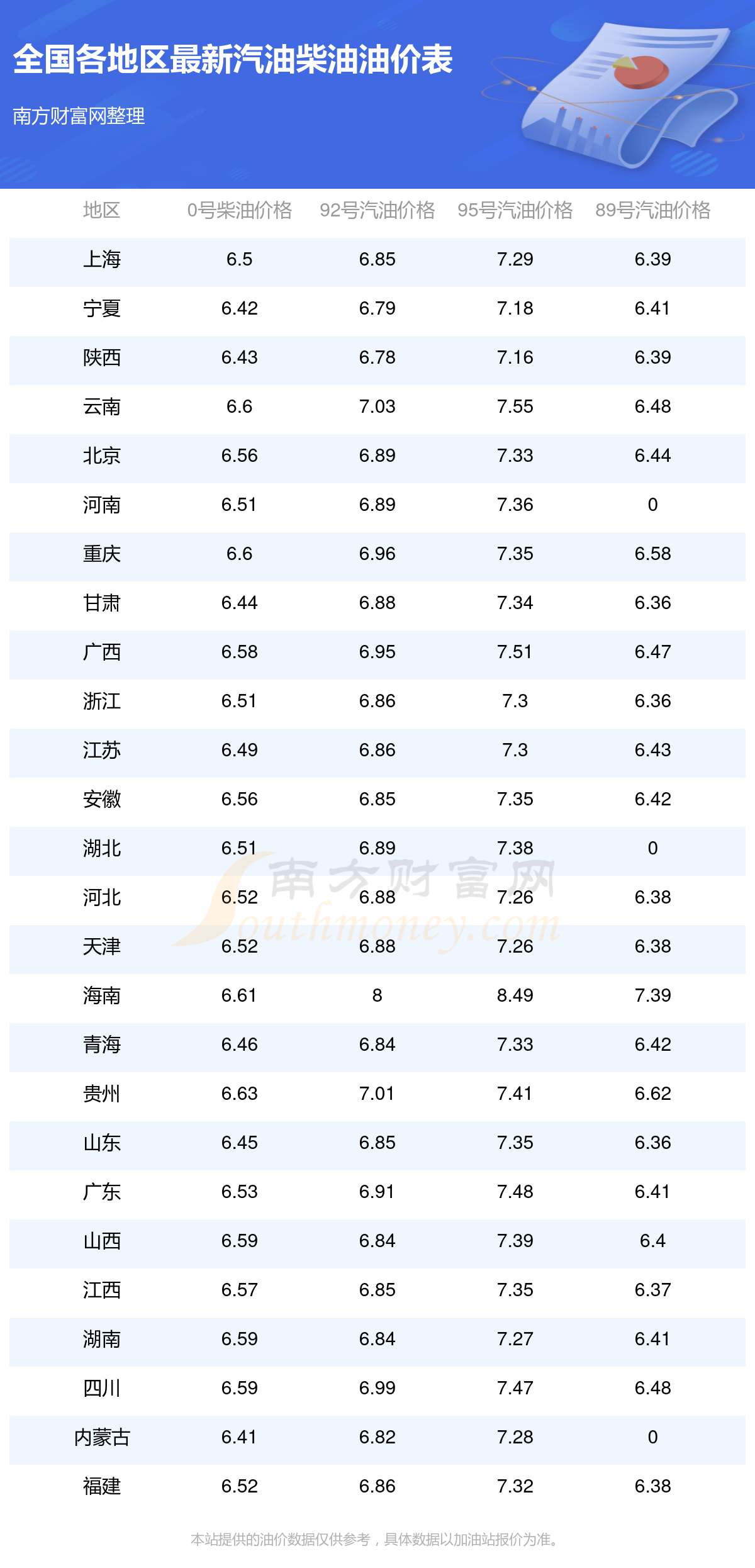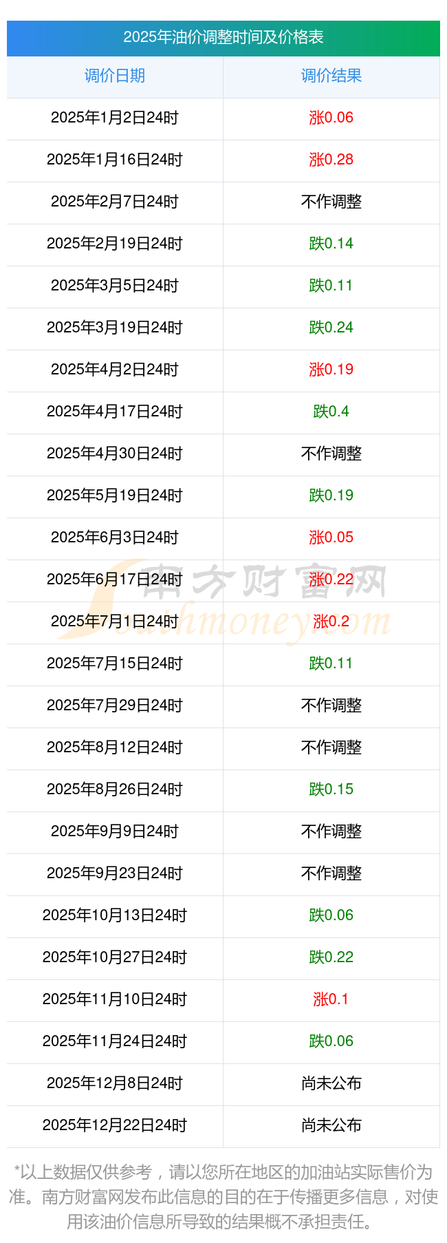 2025年12月4日全國(guó)各地汽油價(jià)格調(diào)整時(shí)間及價(jià)格一覽表