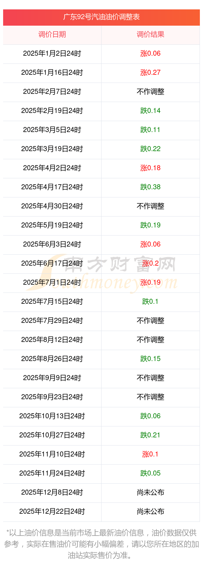 深圳2025年油價調(diào)整時間及最新價格表