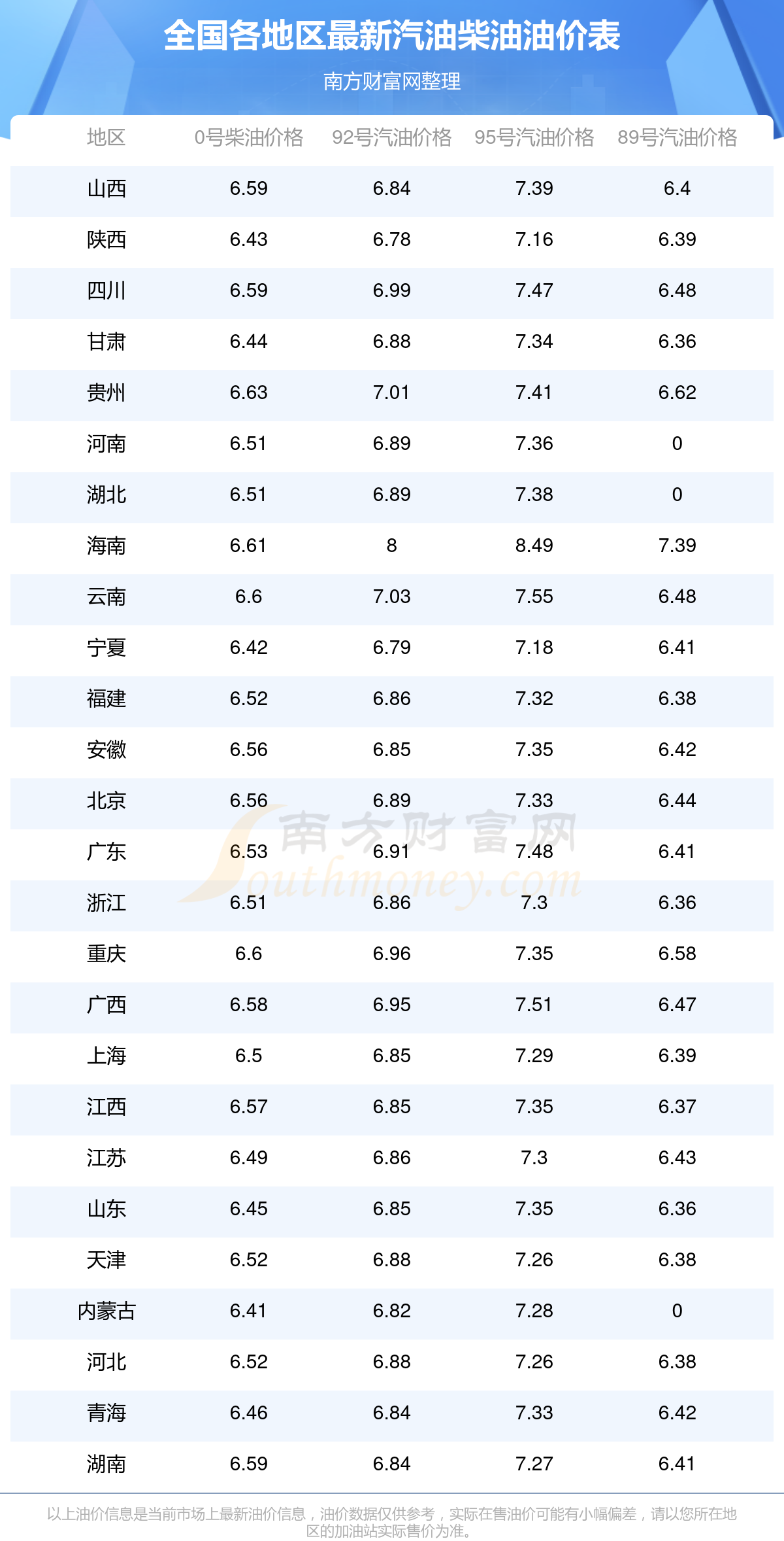 油價數(shù)據(jù)僅供參考,請以您所在地區(qū)的各加油站報價為準(zhǔn)。