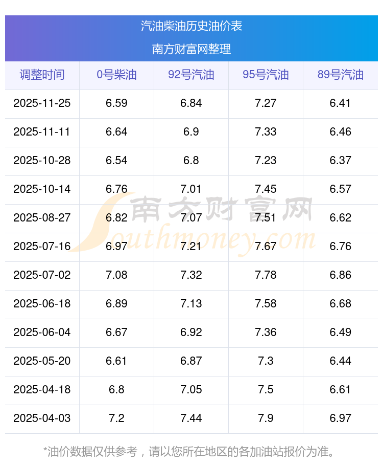 2025年92號(hào)汽油價(jià)格一覽表