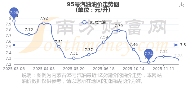 油價(jià)數(shù)據(jù)僅供參考,請(qǐng)以您所在地區(qū)的加油站報(bào)價(jià)為準(zhǔn)。南方財(cái)富網(wǎng)發(fā)布此信息的目的在于傳播更多信息,對(duì)使用該油價(jià)信息所導(dǎo)致的結(jié)果概不承擔(dān)任何責(zé)任。