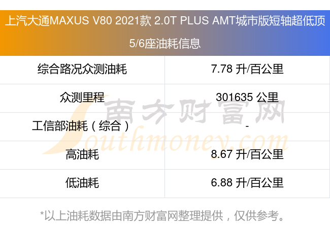 根據(jù)多位車(chē)主實(shí)測(cè)得出數(shù)據(jù),該車(chē)型低油耗為6.88L/100km,高油耗為8.67L/100km,綜合路況眾測(cè)油耗為7.78L/100km,工信部綜合油耗為-L/100km。