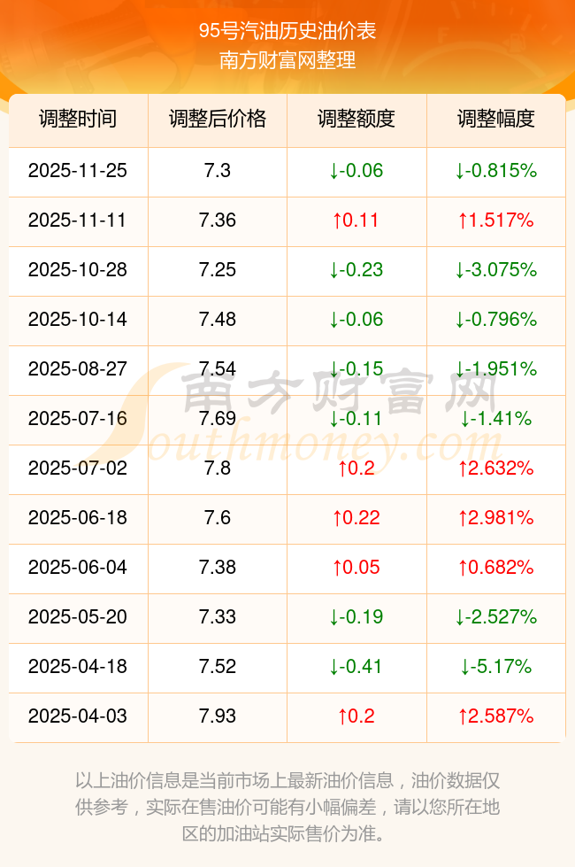 2025年油價(jià)調(diào)整時(shí)間及價(jià)格一覽表