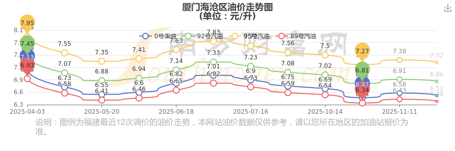廈門海滄區(qū)12月4日95號汽油歷史油價調整走勢圖