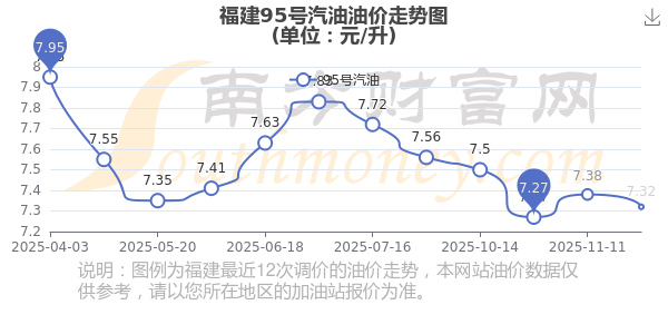 12月4日福建95號汽油最新價格是7.32元每升,調整時間為11月25日,相對上次調整下跌了0.06元,下跌0.813%。