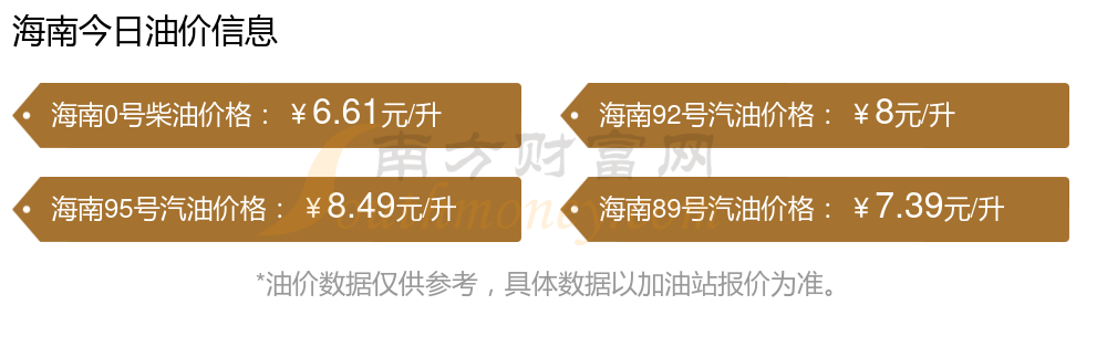 以上數(shù)據(jù)僅供參考,請以您所在地區(qū)的加油站實(shí)際售價(jià)為準(zhǔn)。南方財(cái)富網(wǎng)發(fā)布此信息的目的在于傳播更多信息,對使用該油價(jià)信息所導(dǎo)致的結(jié)果概不承擔(dān)責(zé)任。