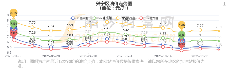 12月4日興寧區(qū)0號(hào)柴油歷史油價(jià)調(diào)整走勢(shì)圖