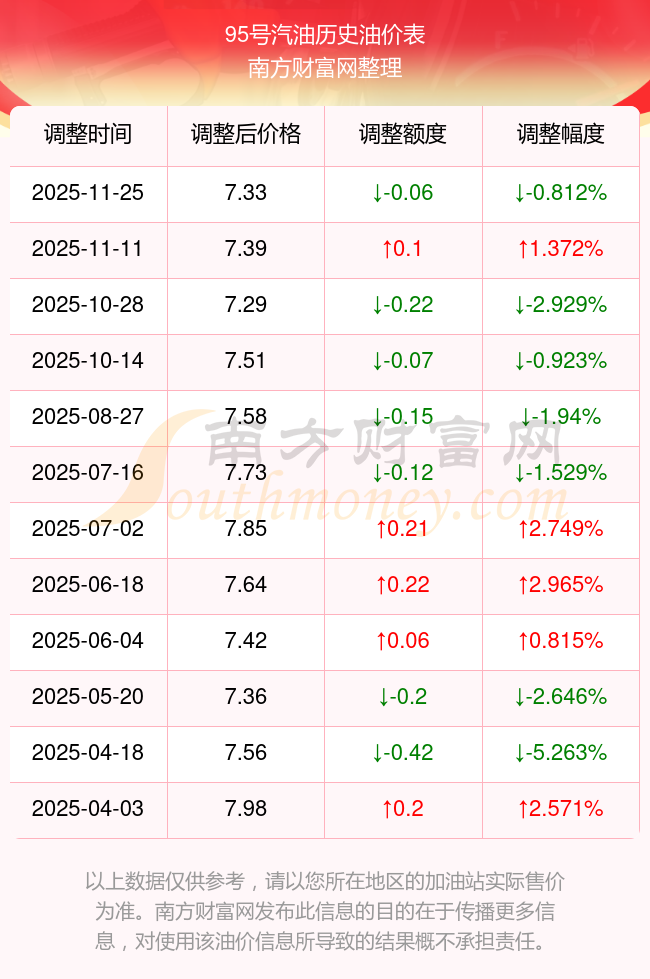 油價(jià)數(shù)據(jù)僅供參考,請(qǐng)以您所在地區(qū)的各加油站報(bào)價(jià)為準(zhǔn)。