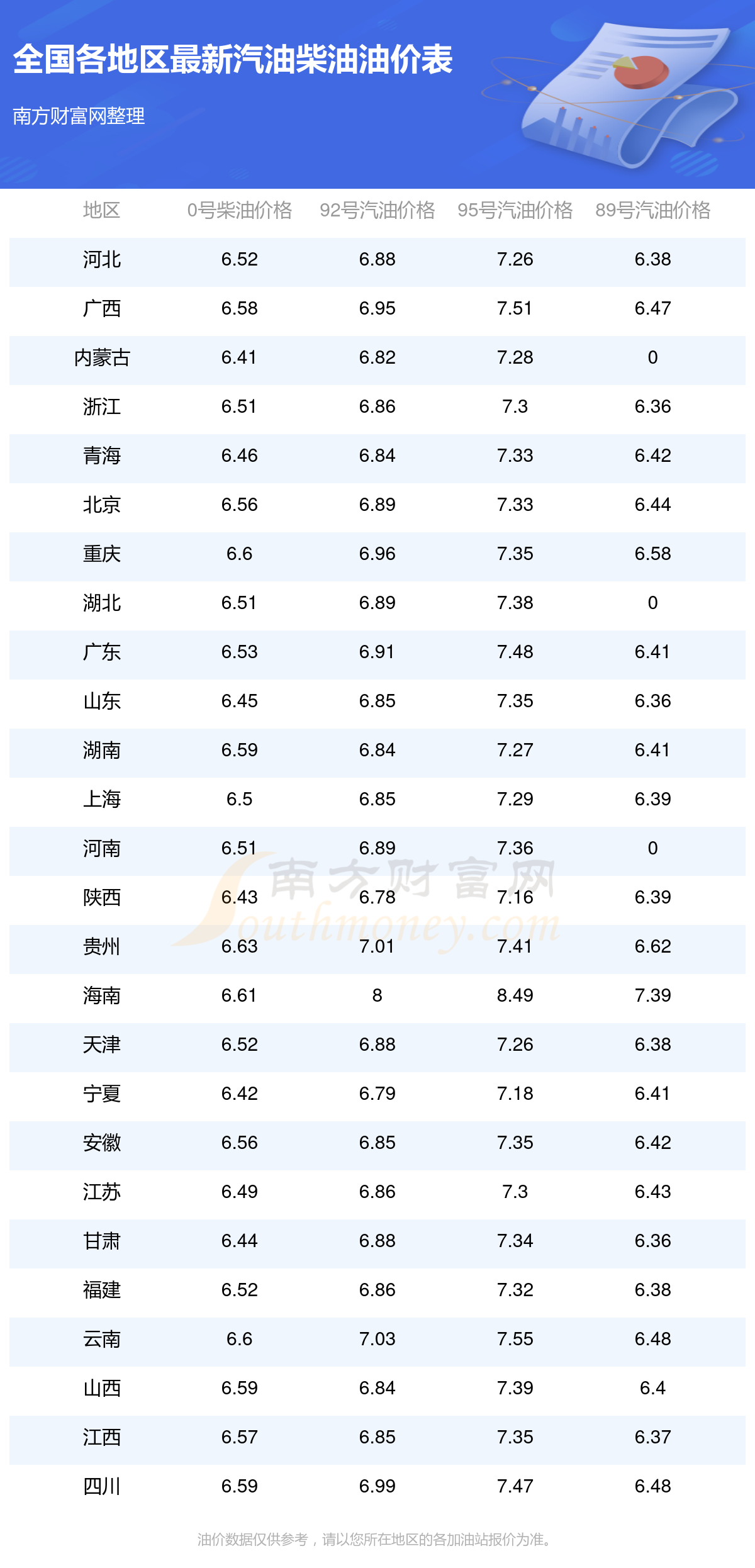 汽油價格調(diào)整最新消息:下一輪油價調(diào)整12月8日24時開啟。本輪油價的調(diào)整時間為11月25日,調(diào)整后全國92號汽油平均價格為7元每升,其中,最低為陜西的6.78元/升,最高為海南的8.00元/升。全國95號汽油平均價格為7元每升,其中,最低為陜西的7.16元/升,最高為海南的8.49元/升。全國0號柴油平均價格為:7元每升,其中,最低為內(nèi)蒙古的6.41元/升,最高為貴州的6.63元/升。全國89號汽油平均價格為6元每升,其中,最低為浙江的6.36元/升,最高為海南的7.39元/升。