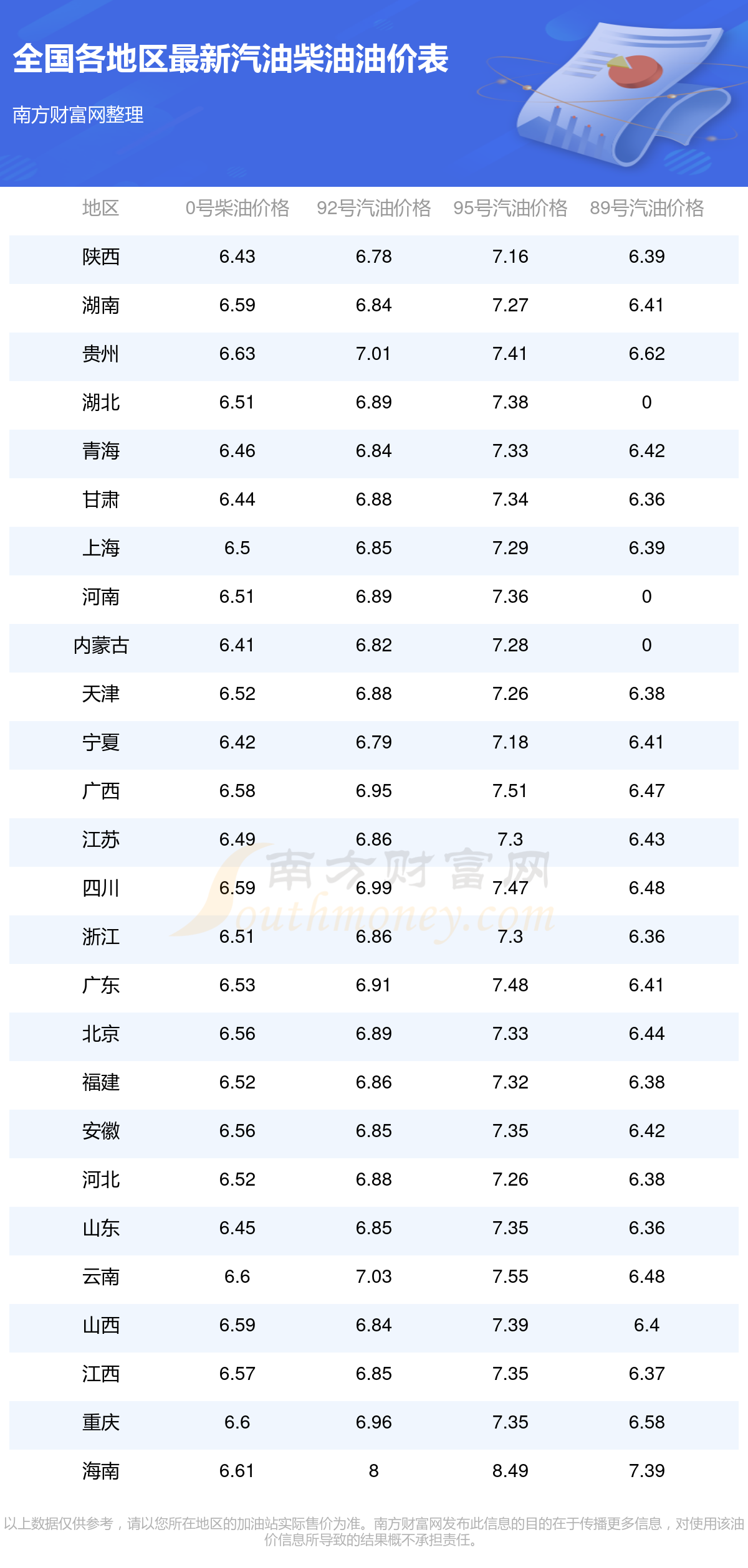本站提供的油價數據僅供參考,具體數據以加油站報價為準。