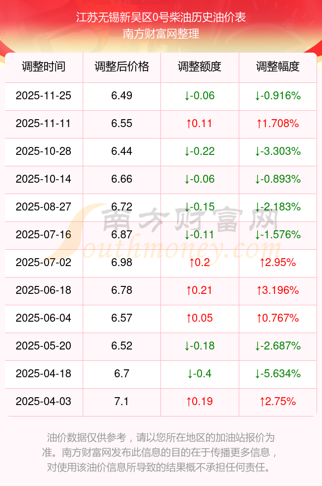 江蘇無錫新吳區(qū)0號(hào)柴油歷史油價(jià)一覽表