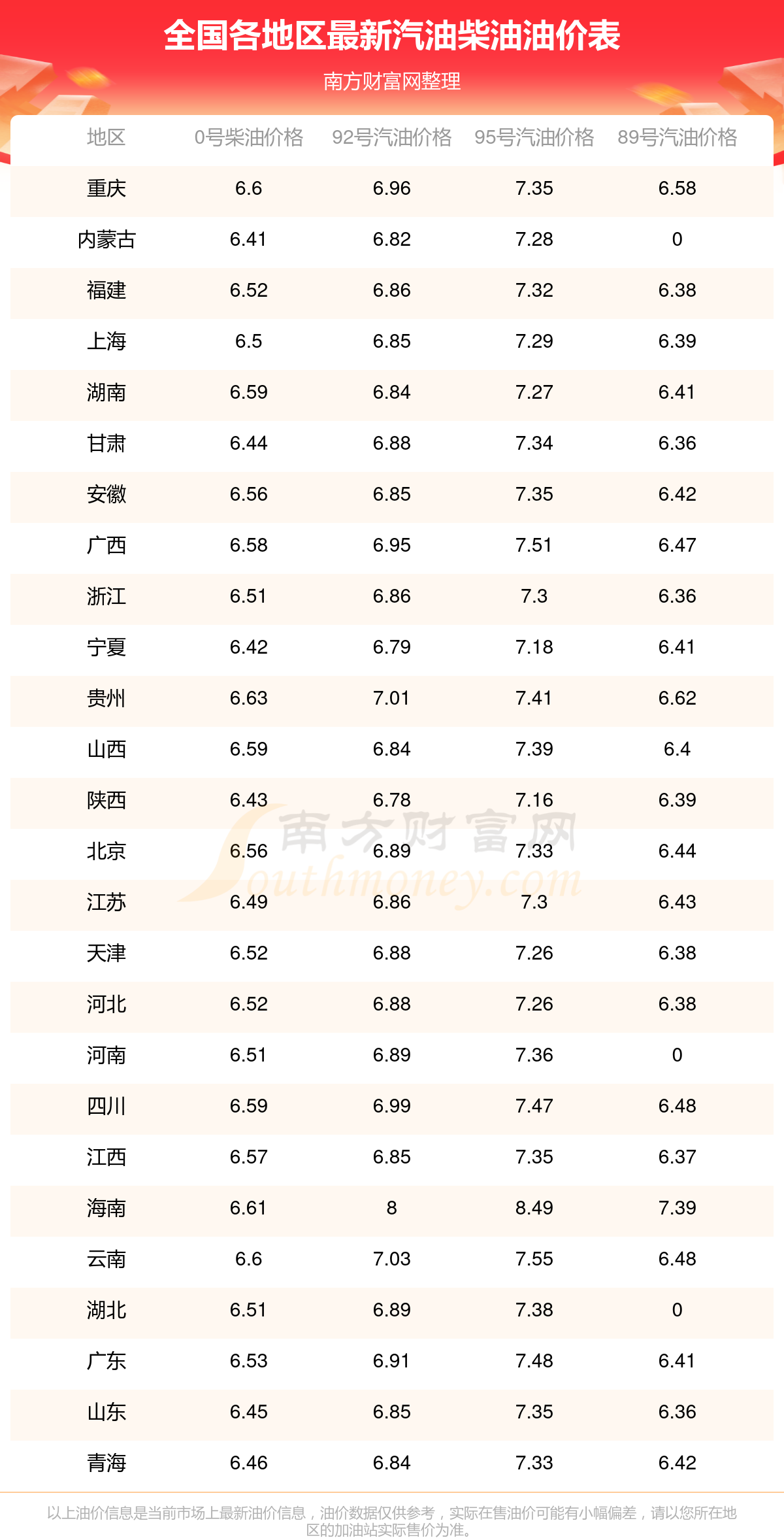 2025年12月4日全國油價調(diào)整及最新汽油價格表