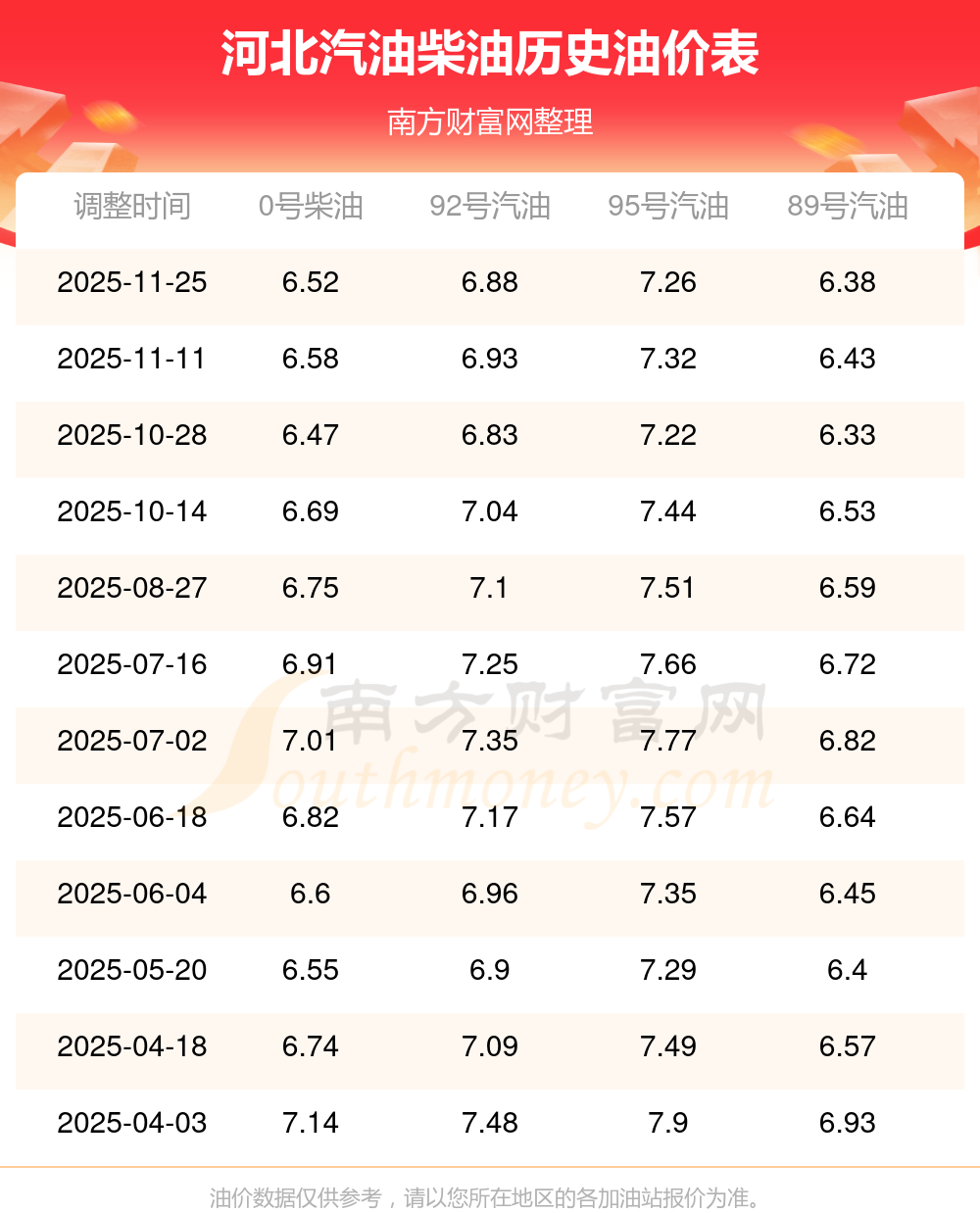 河北0號(hào)柴油油價(jià)調(diào)整表