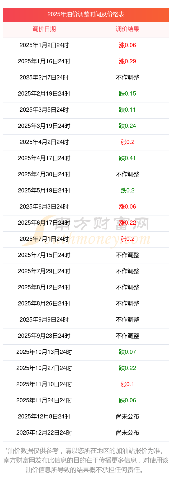 2025年12月4日全國各地油價(jià)調(diào)整時(shí)間表