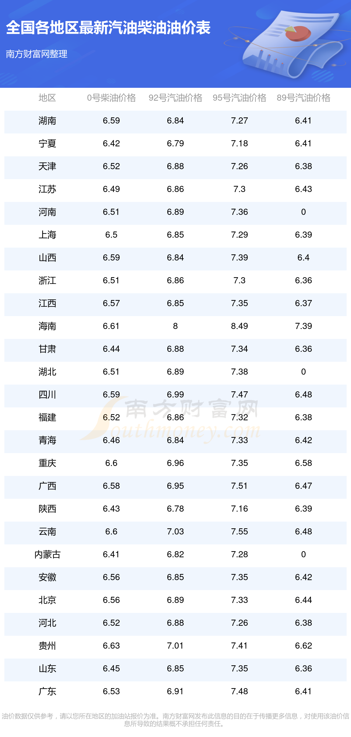 全國(guó)各地區(qū)最新油價(jià)表