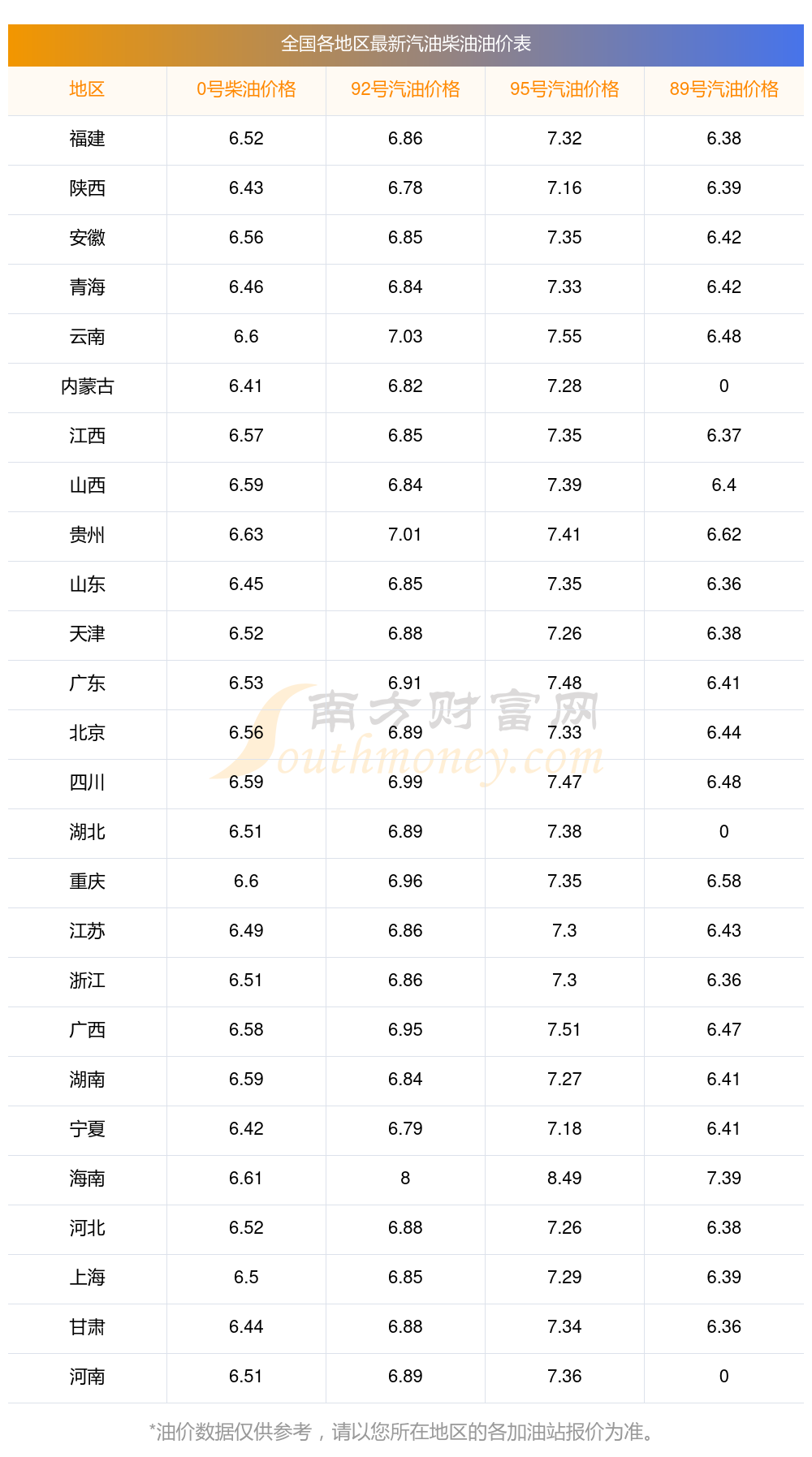 以上油價(jià)信息是當(dāng)前市場上最新油價(jià)信息,油價(jià)數(shù)據(jù)僅供參考,實(shí)際在售油價(jià)可能有小幅偏差,請(qǐng)以您所在地區(qū)的加油站實(shí)際售價(jià)為準(zhǔn)。