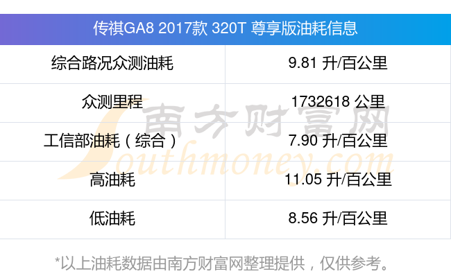 以上油耗數(shù)據(jù)由南方財(cái)富網(wǎng)整理提供,僅供參考。