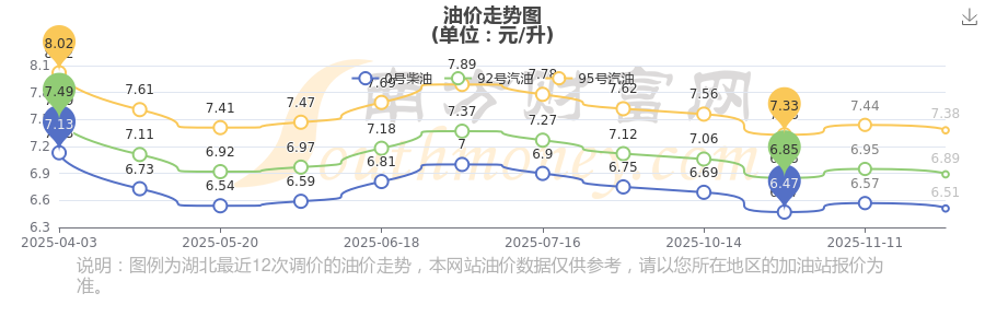 湖北黃石92號(hào)汽油12月4日的價(jià)格為每升6.89元,本次油價(jià)的調(diào)整時(shí)間11月25日,對比上次油價(jià)調(diào)整時(shí)間11月11日的價(jià)格6.95元/升,共減了0.06元,減幅達(dá)0.863%。下一輪油價(jià)調(diào)整時(shí)間12月8日24時(shí),距離現(xiàn)在還有4.29天。