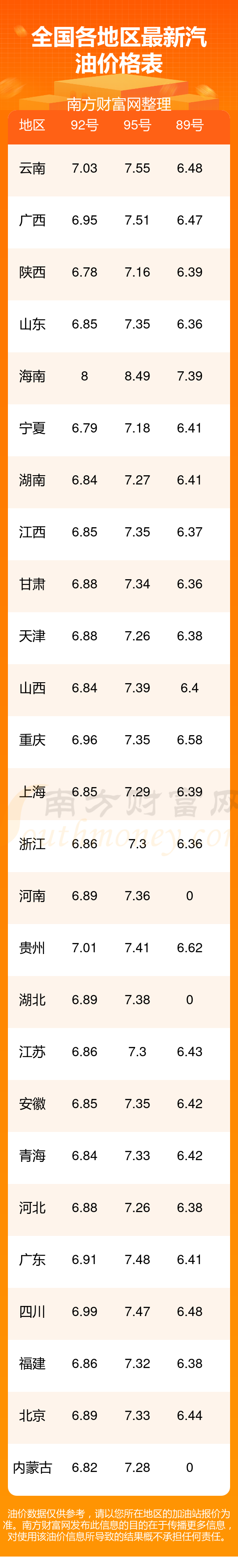 2025年12月4日全國油價調(diào)整時間及最新汽油價格表