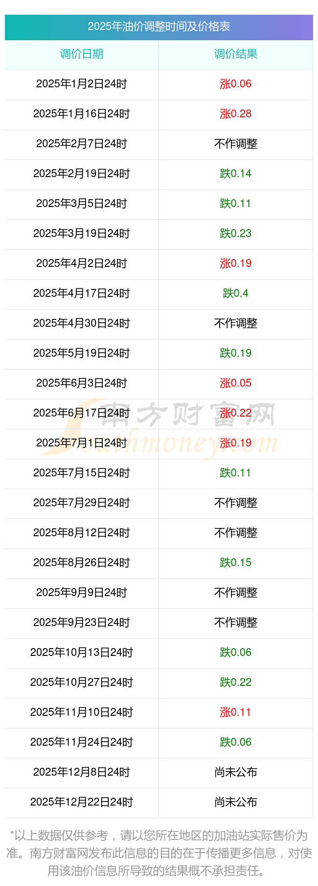 2025年12月4日國(guó)內(nèi)油價(jià)調(diào)整時(shí)間及價(jià)格一覽表