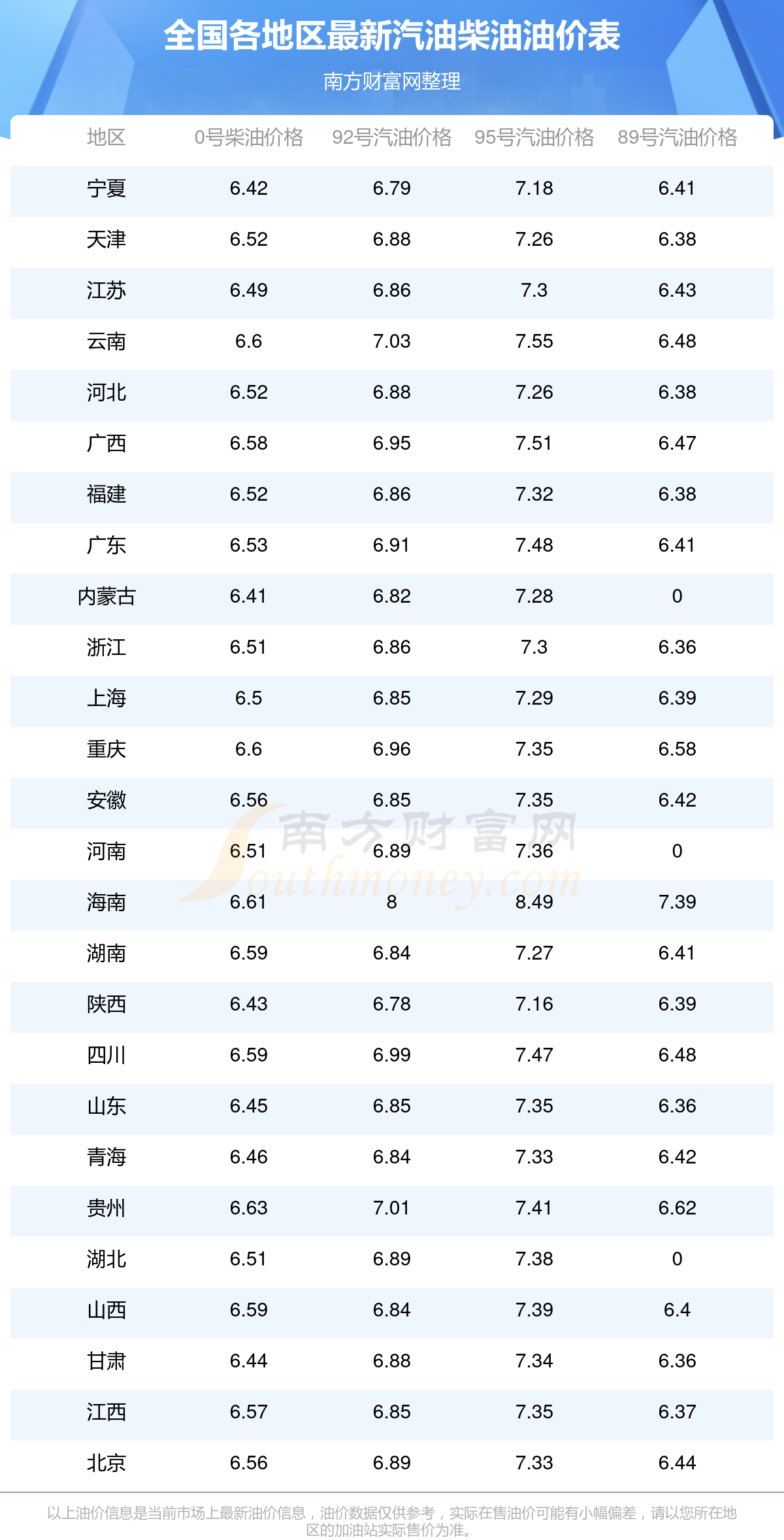 全國95號汽油平均價格為:7元每升,其中,最低為陜西,價格7.16元/升,最高為海南,價格8.49元/升。