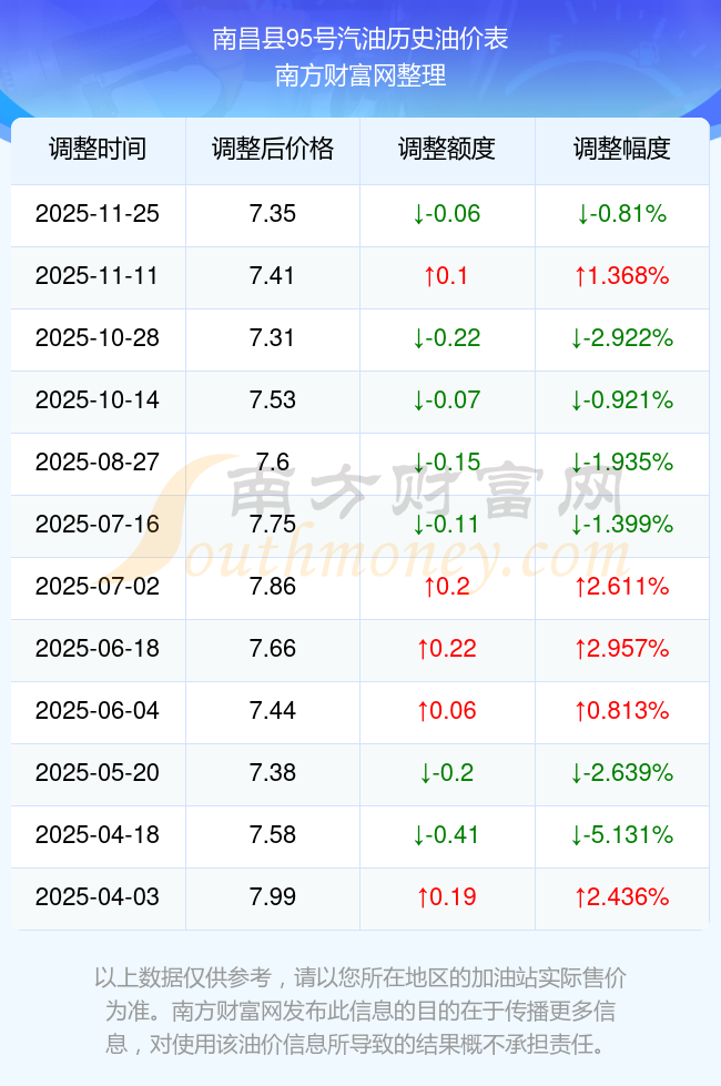 12月4日南昌縣95號汽油歷史油價(jià)一覽表
