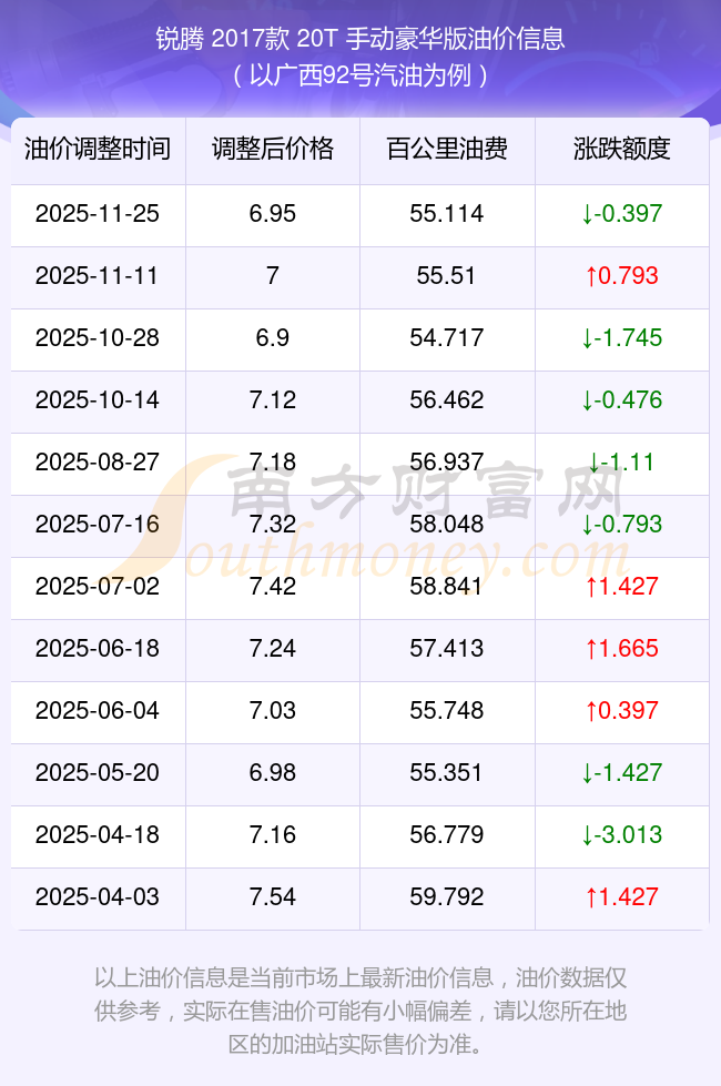 以上油耗數(shù)據(jù)由南方財富網(wǎng)整理提供,僅供參考。