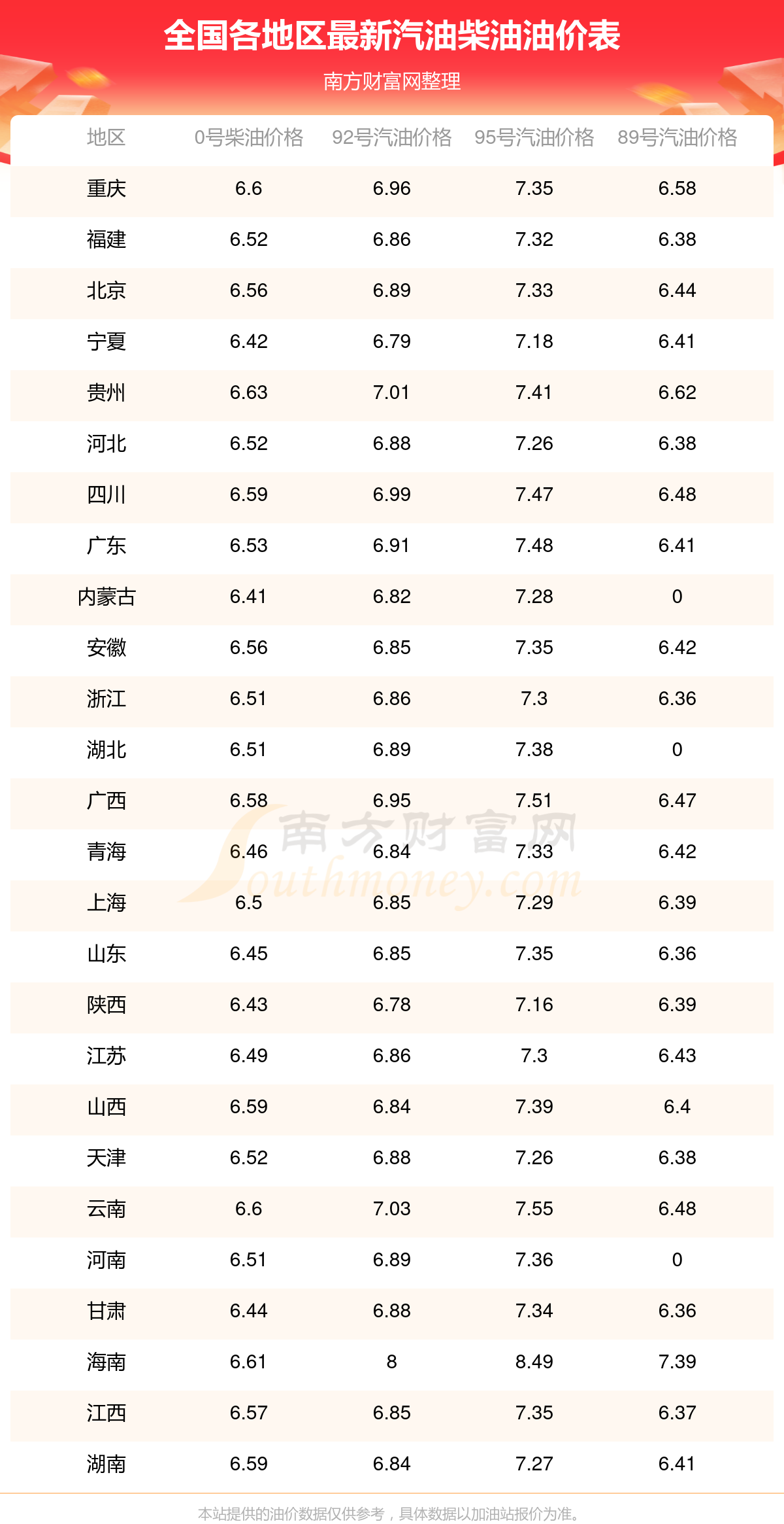 油價(jià)數(shù)據(jù)僅供參考,請以您所在地區(qū)的各加油站報(bào)價(jià)為準(zhǔn)。