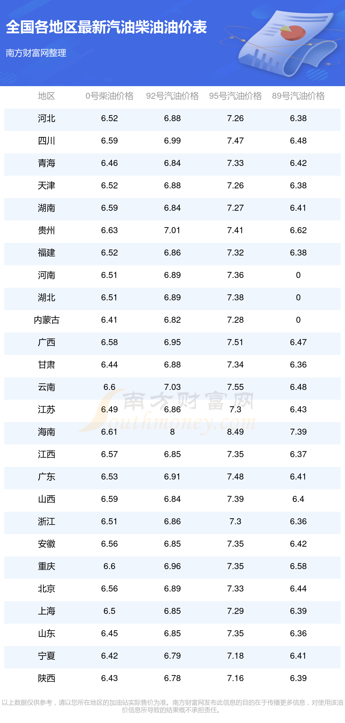 2025年12月4日全國油價調(diào)整及最新汽油價格表