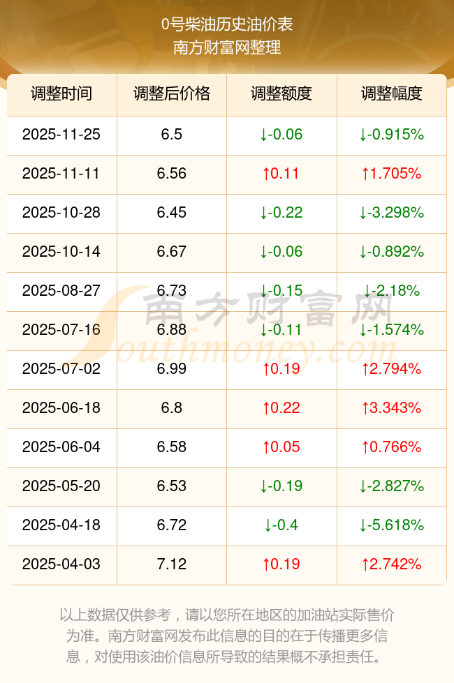 汽油價格調(diào)整最新消息:下一輪油價調(diào)整時間12月8日24時。12月4日上海汽油、柴油每升的價格為11月25日調(diào)整后的價格,92號汽油為6.85元,降了0.06元,降幅達0.87%;95號汽油為7.29元,降了0.06元,降幅達0.82%;89號汽油為6.39元,降了0.05元,降幅達0.78%;0號柴油為6.5元,降了0.06元,降幅達0.92%。