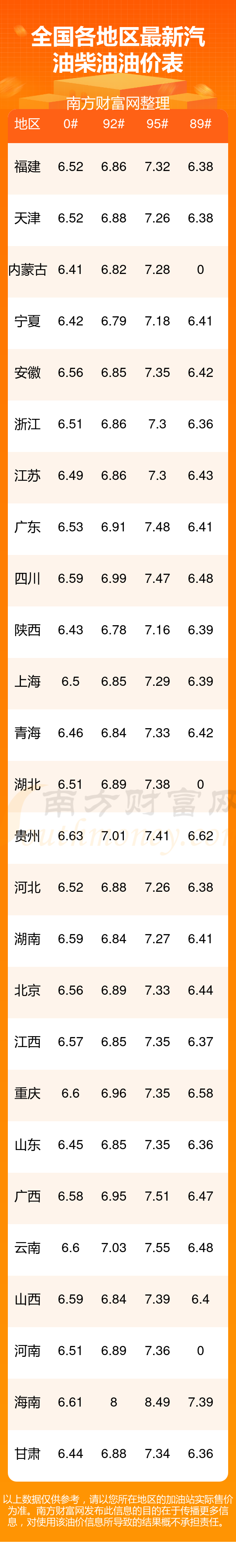 油價數(shù)據(jù)僅供參考,請以您所在地區(qū)的加油站報價為準。南方財富網(wǎng)發(fā)布此信息的目的在于傳播更多信息,對使用該油價信息所導致的結果概不承擔任何責任。