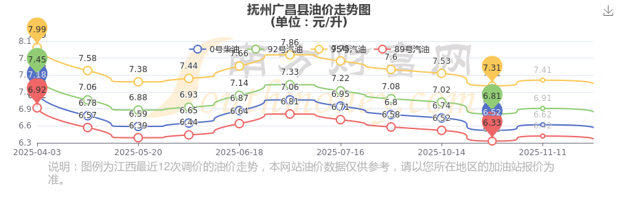 撫州廣昌縣12月4日95號汽油歷史油價調整走勢圖