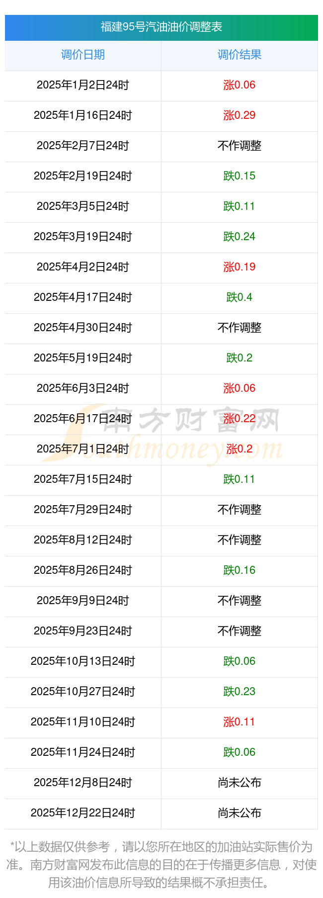 2025年福建寧德油價調(diào)整日歷時間表