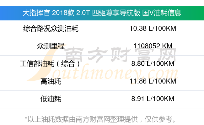 根據(jù)多位車主實(shí)測(cè)得出數(shù)據(jù),該車型低油耗為8.91L/100km,高油耗為11.86L/100km,綜合路況眾測(cè)油耗為10.38L/100km,工信部綜合油耗為8.80L/100km。