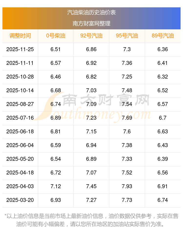 12月4日溫州95號汽油的最新價格:溫州95號汽油7.3元/升(根據11月25日調整后的價格),相對上次調整時間11月11日的油價7.36元每升,降了0.06元,降0.815%。下一輪油價調整時間12月8日24時,距離現(xiàn)在還有4.07天。