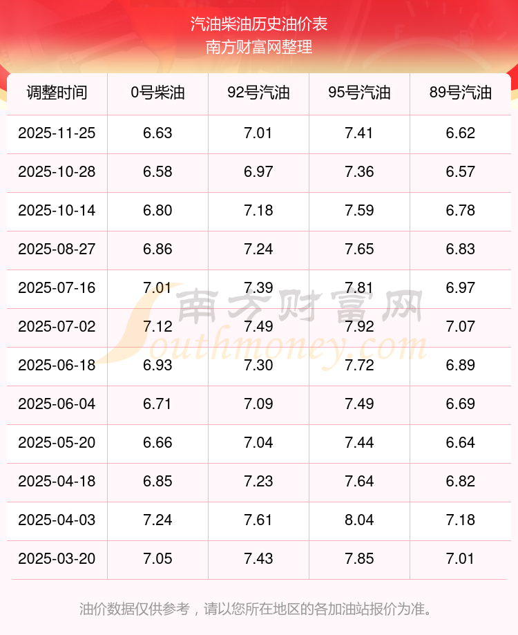 貴州安順95號汽油12月4日價格查詢:11月25日油價調(diào)整后,貴州安順95號汽油7.41元/升,相對上次調(diào)整時間10月28日的油價7.47元每升,降了0.06元,降0.803%。下一輪油價調(diào)整時間12月8日24時,距離現(xiàn)在還有4.06天。