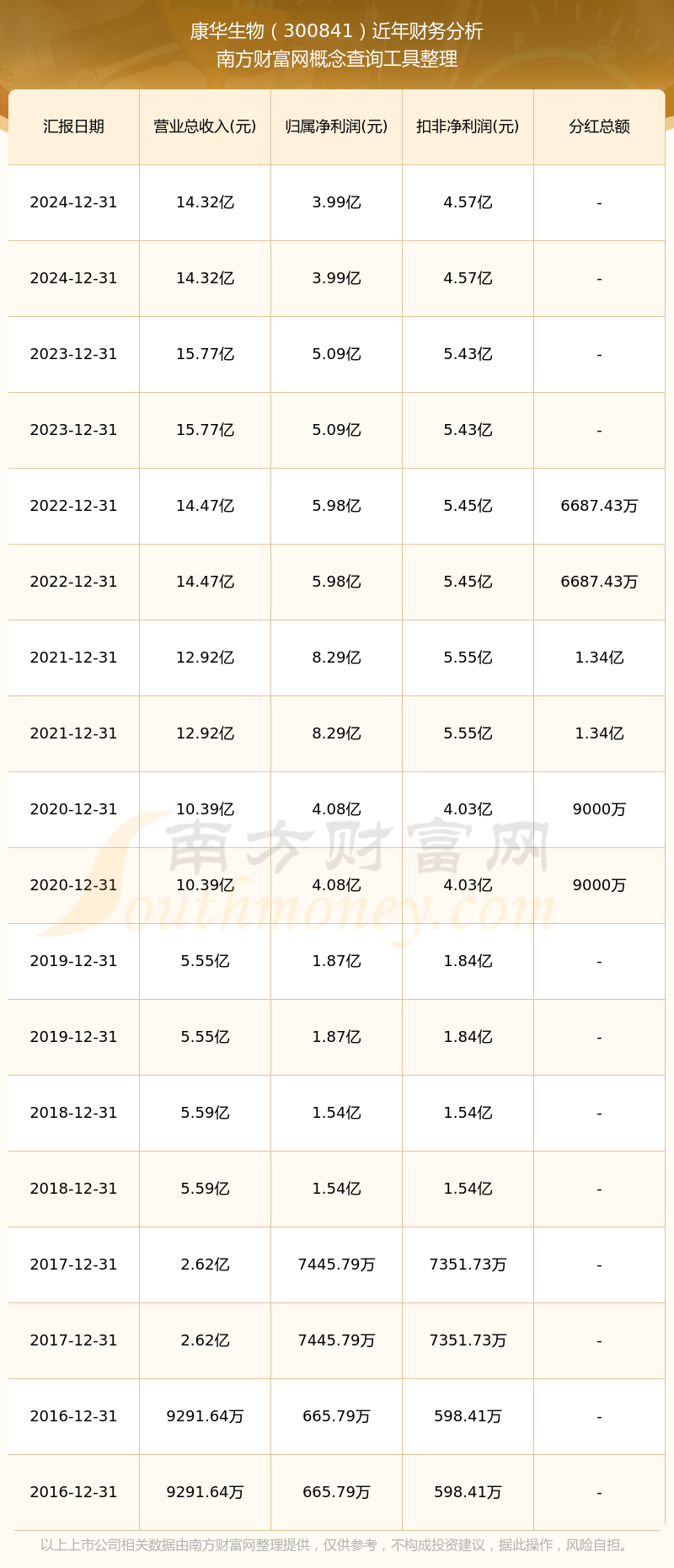 近年康華生物分紅派息情況如下表所示: