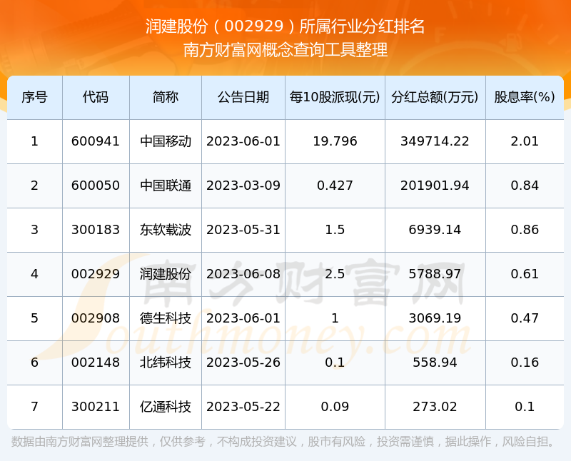 按照南方財(cái)富網(wǎng)趨勢選股系統(tǒng)統(tǒng)計(jì),潤建股份所屬行業(yè)為通信服務(wù)行業(yè),通信服務(wù)行業(yè)分紅排名情況如下表: