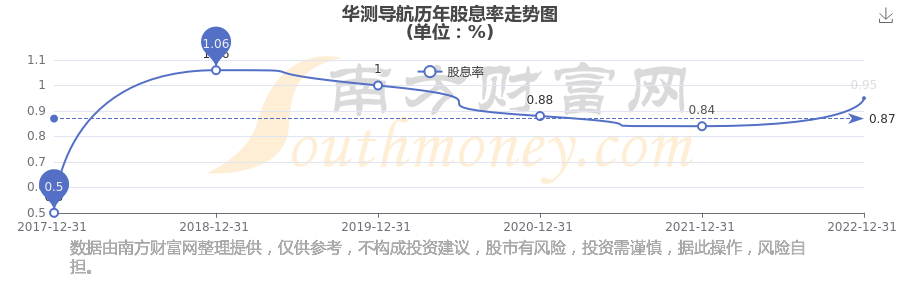 近年華測(cè)導(dǎo)航年度股息率走勢(shì)如下圖: