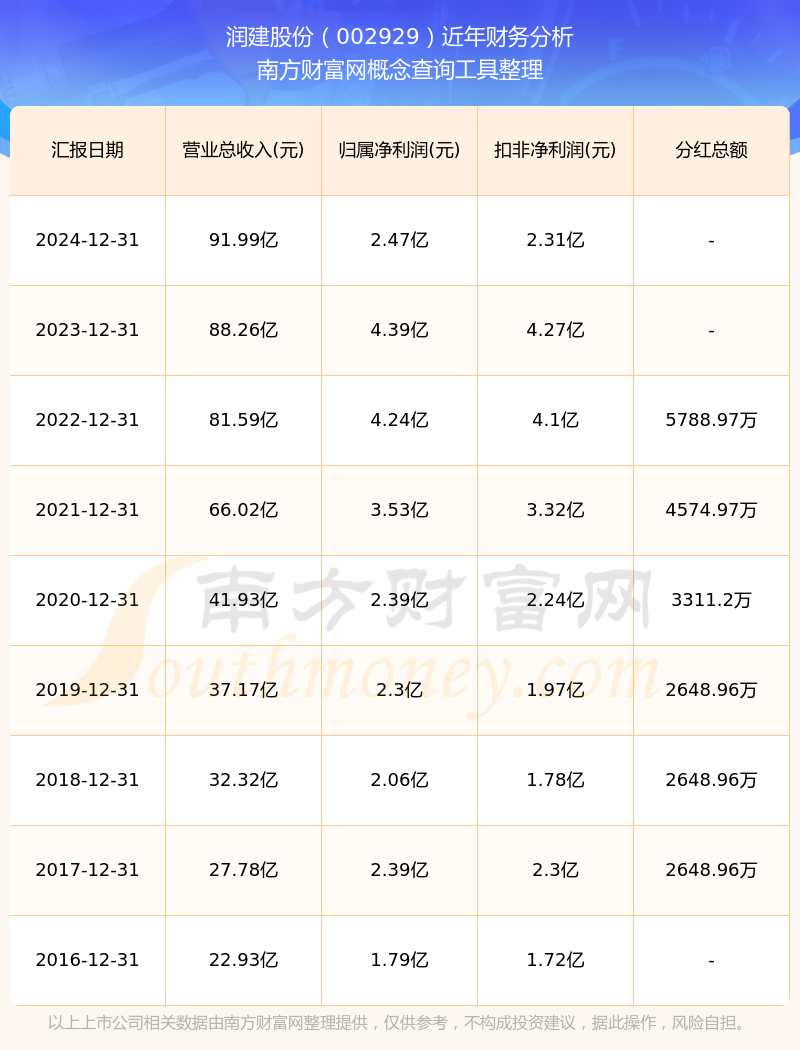 潤建股份公司2024年實現(xiàn)營收91.99億元,凈利潤2.47億元,毛利率15.67%。