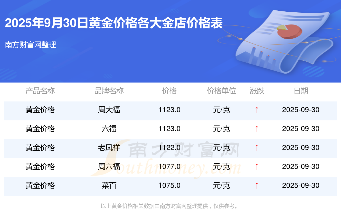 - 2025年9月30日今日品牌黃金價(jià)格來了,各大