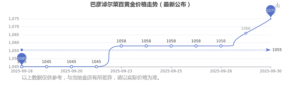 巴彥淖爾菜百黃金價格在 2025年9月30日,其市場價格為 1075.0元/克。