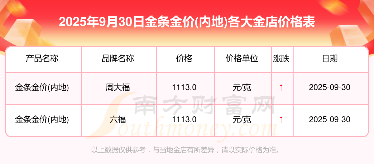 今日金條金價(內(nèi)地)查詢,2025年9月30日各金店金條金價(內(nèi)地)表