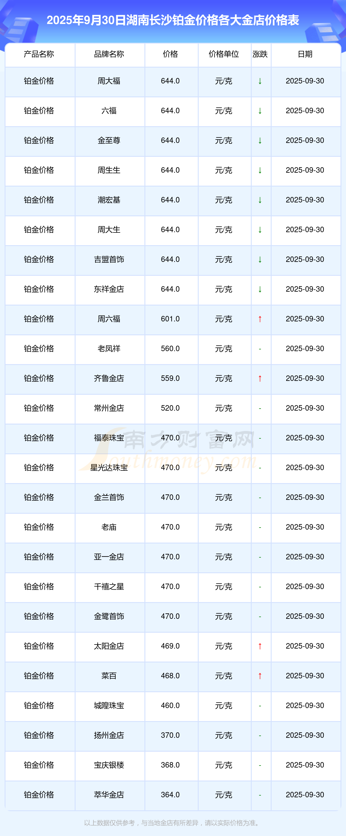 - 2025年9月30日各大金店鉑金價(jià)格多少錢一克