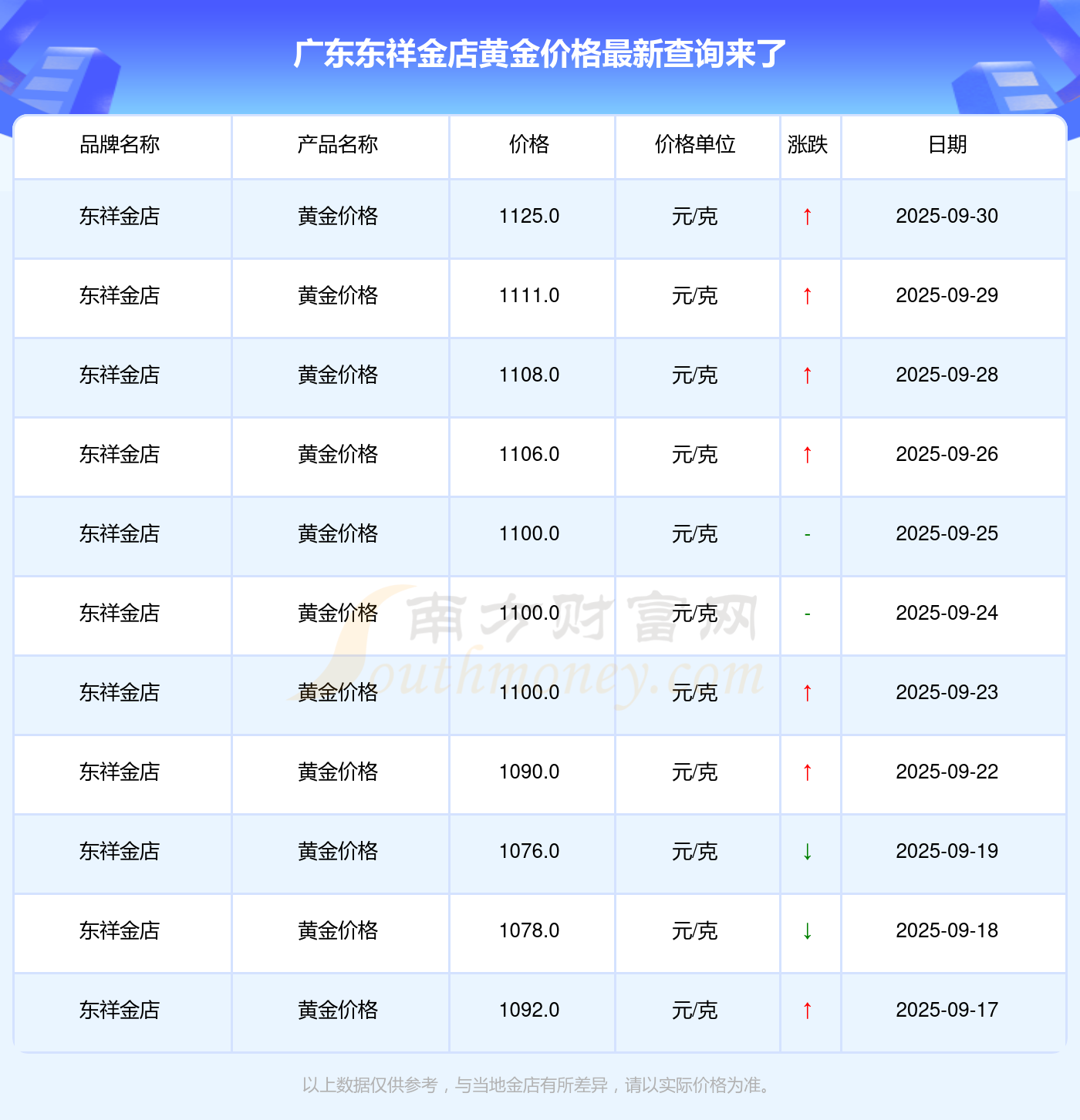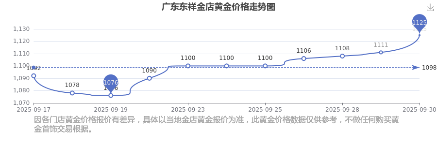 廣東東祥金店黃金價(jià)格現(xiàn)在一克多少錢? 廣東東祥金店黃金價(jià)格表,今日廣東東祥金店黃金價(jià)格查詢,于 2025年9月30日,廣東東祥金店黃金價(jià)格的克價(jià)為1125.0元/克。