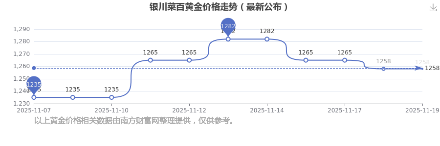 1258.0元/克,這是銀川菜百于 2025年11月19日所定的黃金價(jià)格。