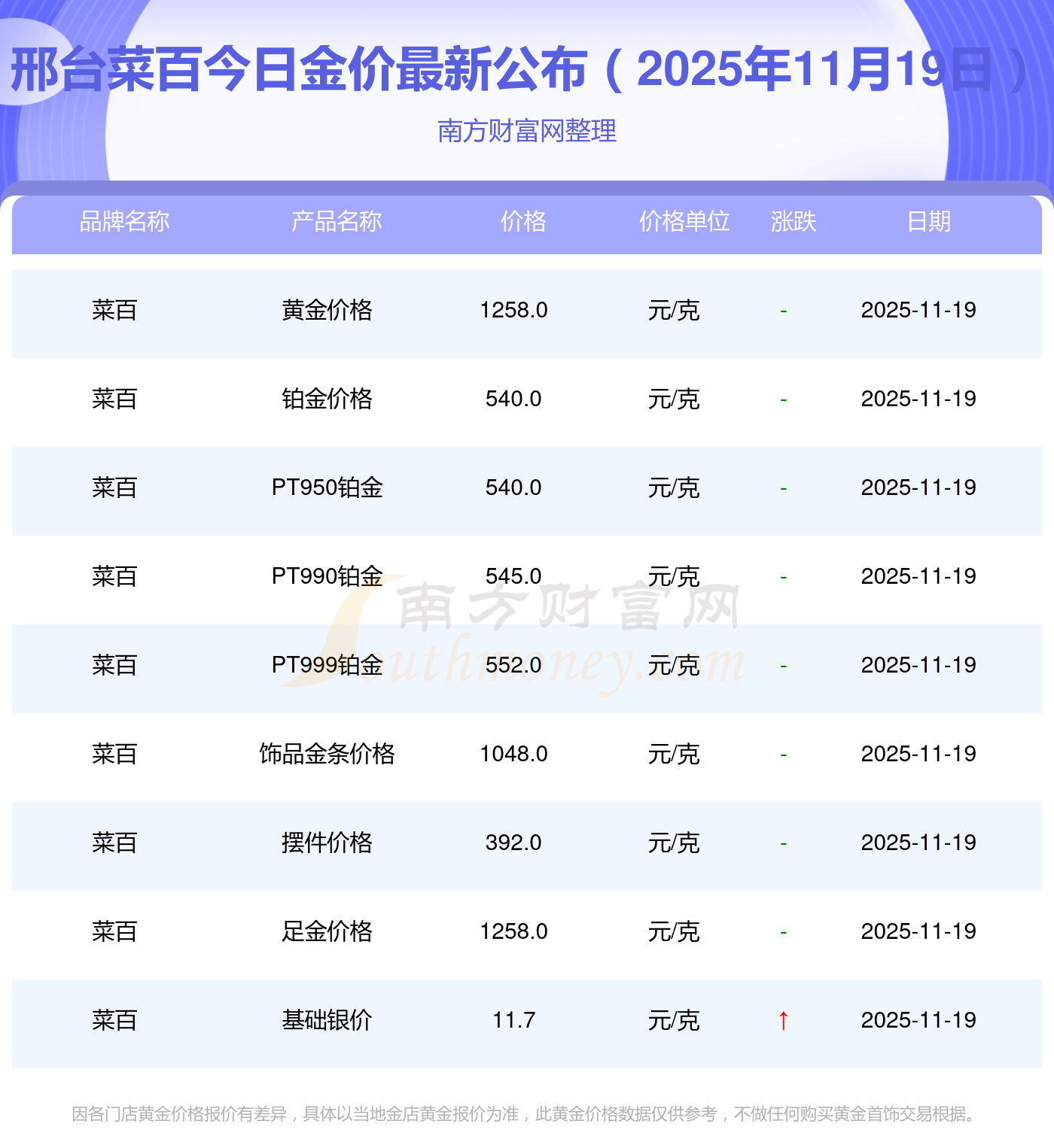 怎樣去查詢當前黃金的最新價格呢,黃金各品類價格表,最新如下圖: