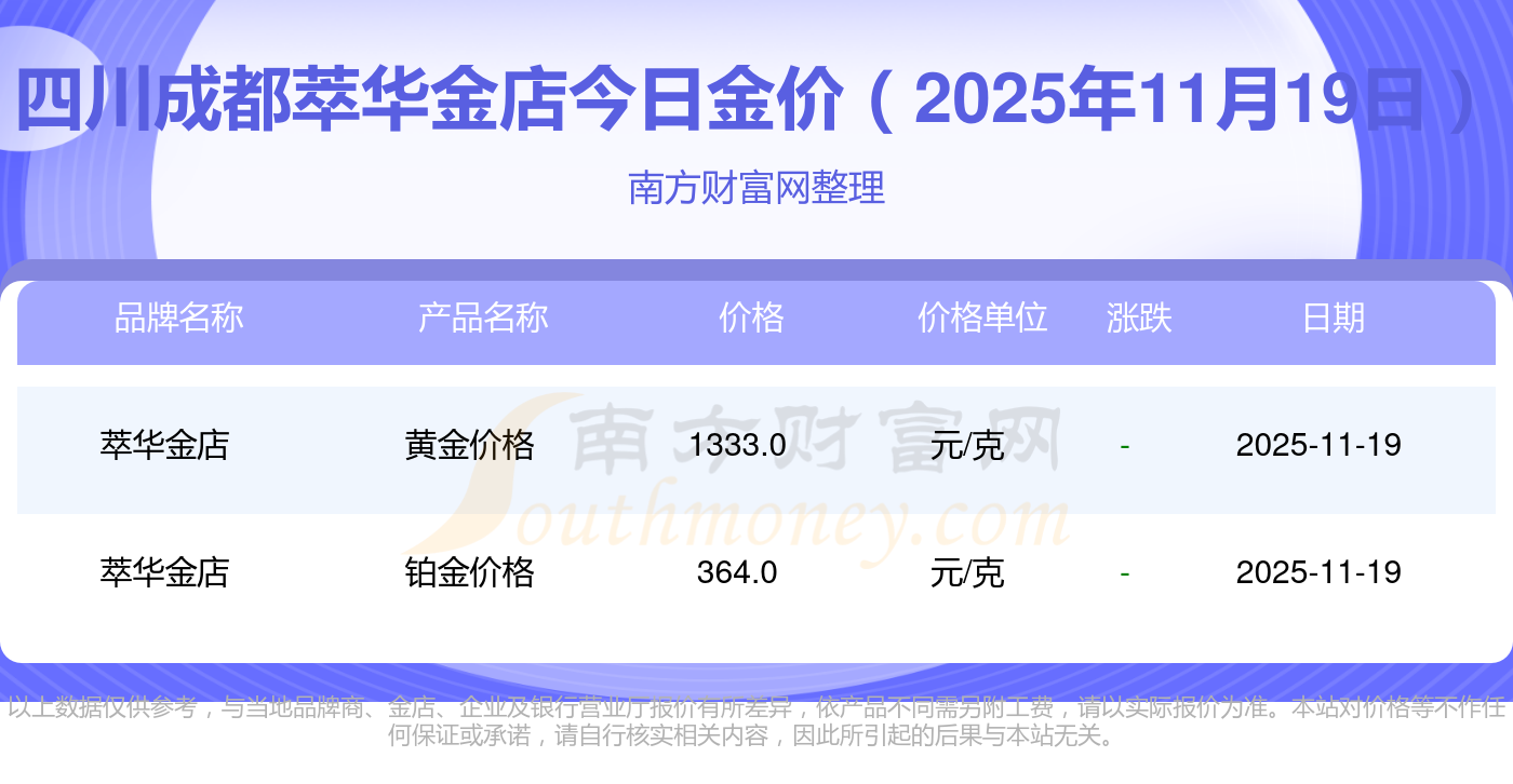 四川成都萃華金店金價今日價格_四川成都萃華金店黃金多少錢一克今天(2025年11月19日)