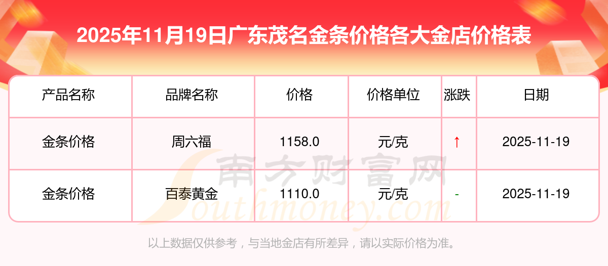 今日金價(jià)多少錢(qián)一克金價(jià)多少?2025年11月19日廣東茂名各大金店金條價(jià)格最新價(jià)格匯總
