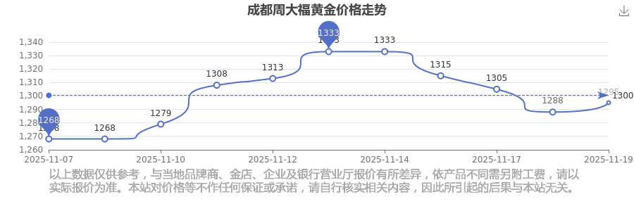 1295.0元/克,此乃成都周大福于 2025年11月19日黃金價格的掛牌價格。